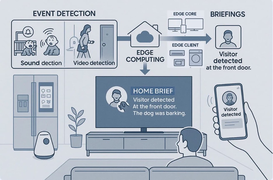 Samsung’s EdgeAware AI Home reimagines home monitoring by unleashing an AI system that can analyze sounds and activity throughout the home. It pulls data from cameras, Samsung and third-party devices, like appliances and other connected devices. (It does not send private data to the cloud, easing concerns for those nervous about the extra eyes inside the house.) It can detect 12 distinct sounds, from breaking glass and running water to even prolonged coughing. It sends alerts, event summaries and even wellness insights. The system also recommends actions to take based on what it identifies, like initiating emergency response services if needed.