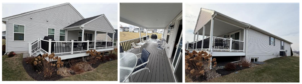 Sliding glass doors lead to a Trex deck that spans nearly the entire back of the home—partially covered for added comfort and accented with tasteful two-tone railings. This maintenance-free outdoor space is the perfect backdrop for al fresco dining, morning coffee, or relaxing evenings.